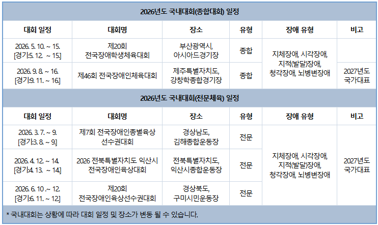 2026년도 장애인육상 국내대회 일정을 안내합니다.