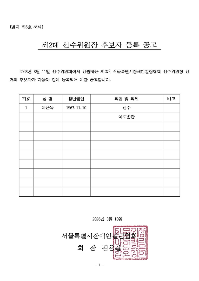 서울특별시장애인컬링협회 선수위원장 후보자 ...